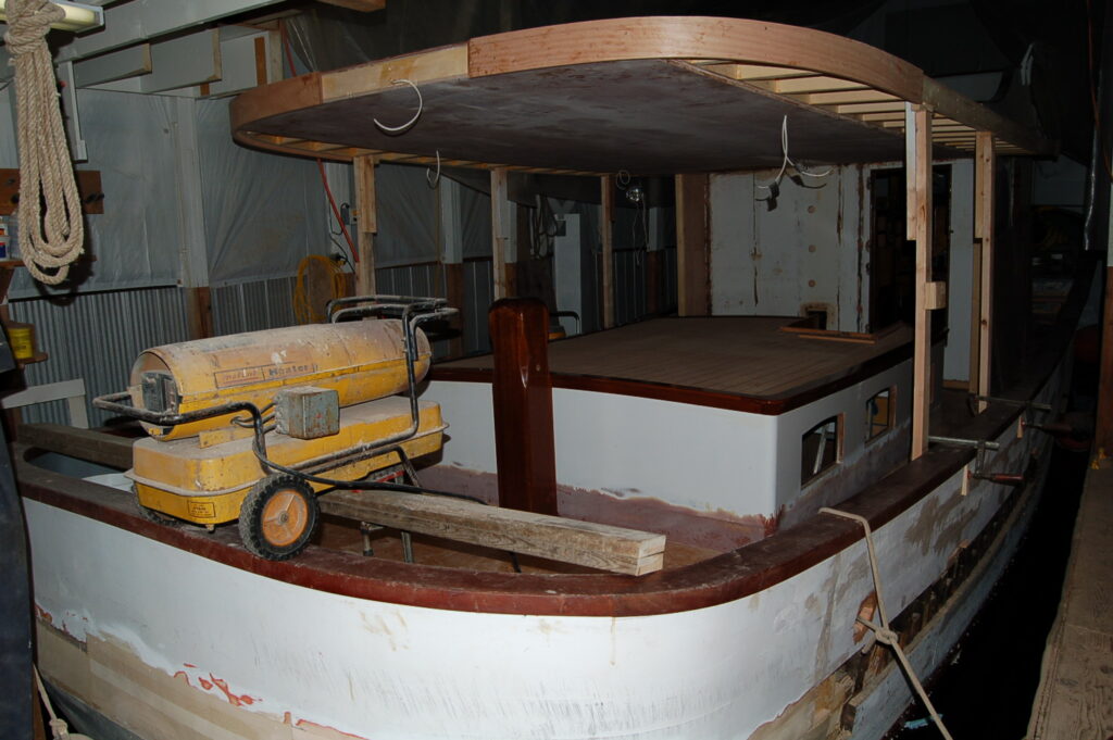 In 2004 Mr. Alan Dickinson purchased Barbara Jean II (refit and name change in 2004) with the purpose of restoring and rebuilding her into a pleasure vessel. Al was blessed with immediate access to the finest marina on Vancouver Island, and therefore had immense talent at his disposal. He began the project appropriately: by gutting her.
